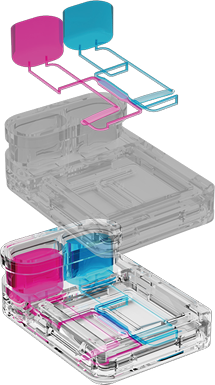 ポンプやチューブが不要なマイクロチャネルにより、チップ内の培養液(栄養素、薬剤、酸素等を供給)は連続的に循環されます。これらのマイクロチャネルは、血管構造を模倣するように設計されており、培養細胞に合わせた流量とシアーストレスを与えることが可能です。