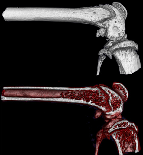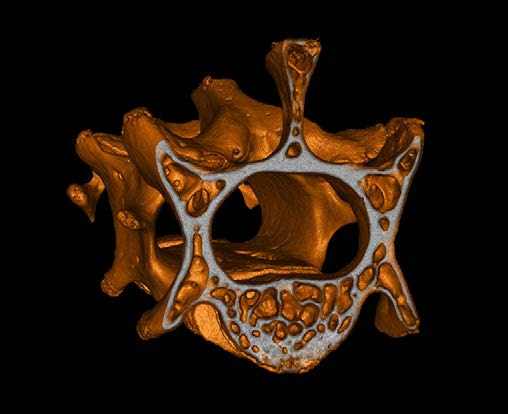 CosmoScan GX IIIは特に高い空間分解能を持ち、5µmまでの解像度と2.9µmのピクセルサイズ(FOV:8mm)を誇ります。これにより小さい骨の細かな解剖学的構造を含むex vivoサンプルの高品質な画像が得られます。