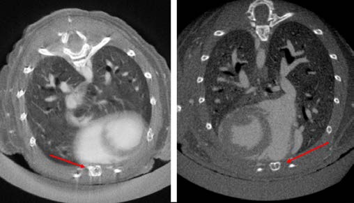 心拍や呼吸による動きは、CT画像のアーティファクトの原因となります。GX IIIは画像ベースの同期技術により、マウス、ラット、フェレットの心臓・肺イメージングを高精度に実現します。